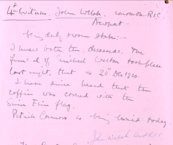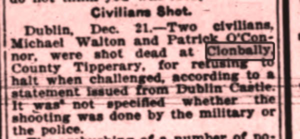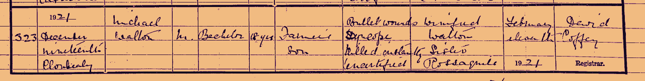 Michael Walton Born - 31/05/1902 Rossaguile, Newport. Died - 19/12/1920 Clonbally, Newport, Nenagh.