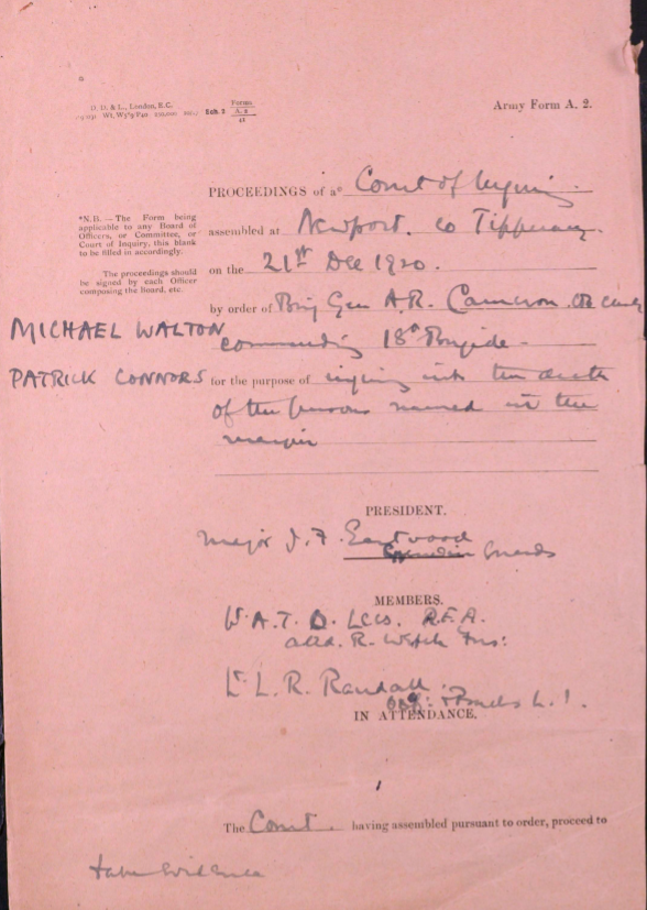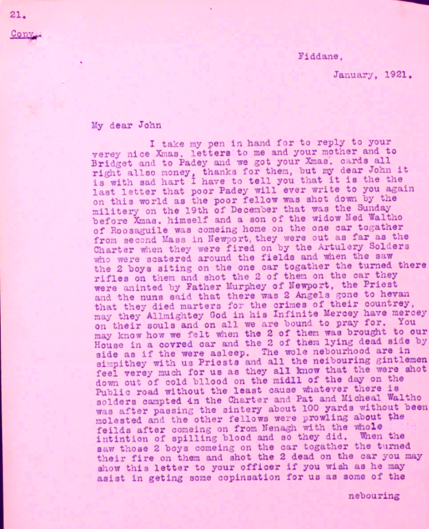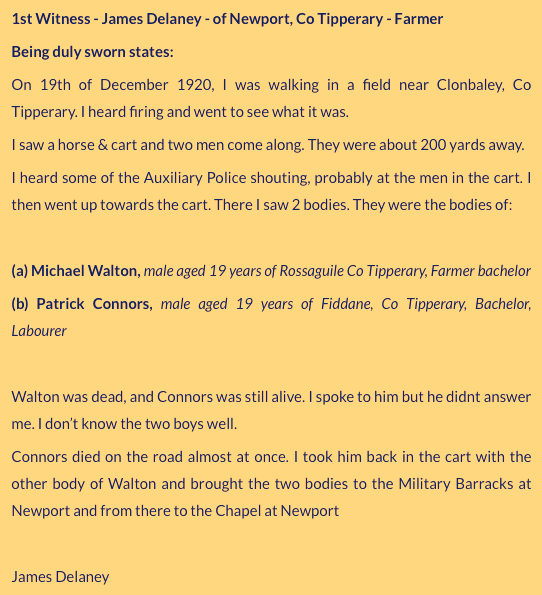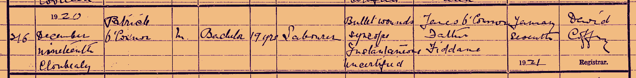 Patrick Connors Born - 13/05/1902 Fiddane, Newport. Died - 19/12/1920 Clonbally, Newport, Nenagh.
