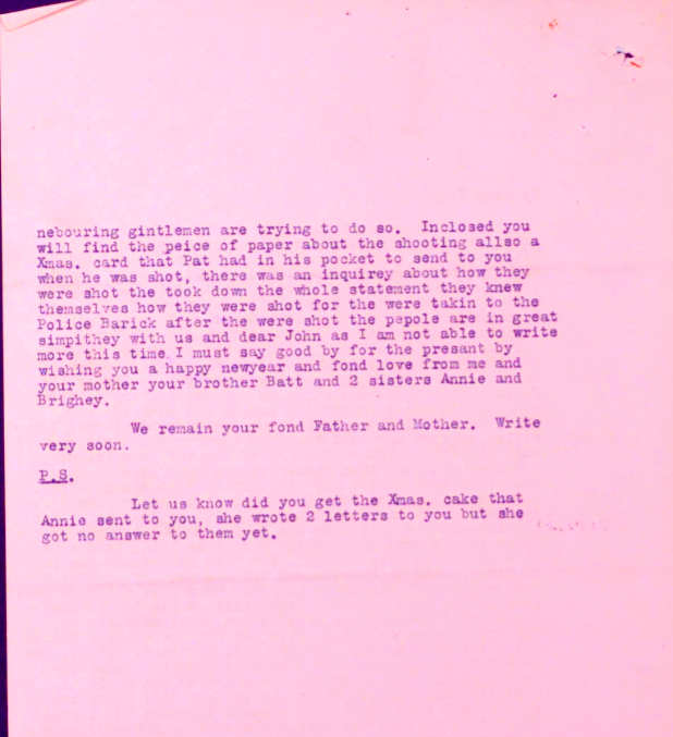 Shot by Auxilleries on their way home from Mass
